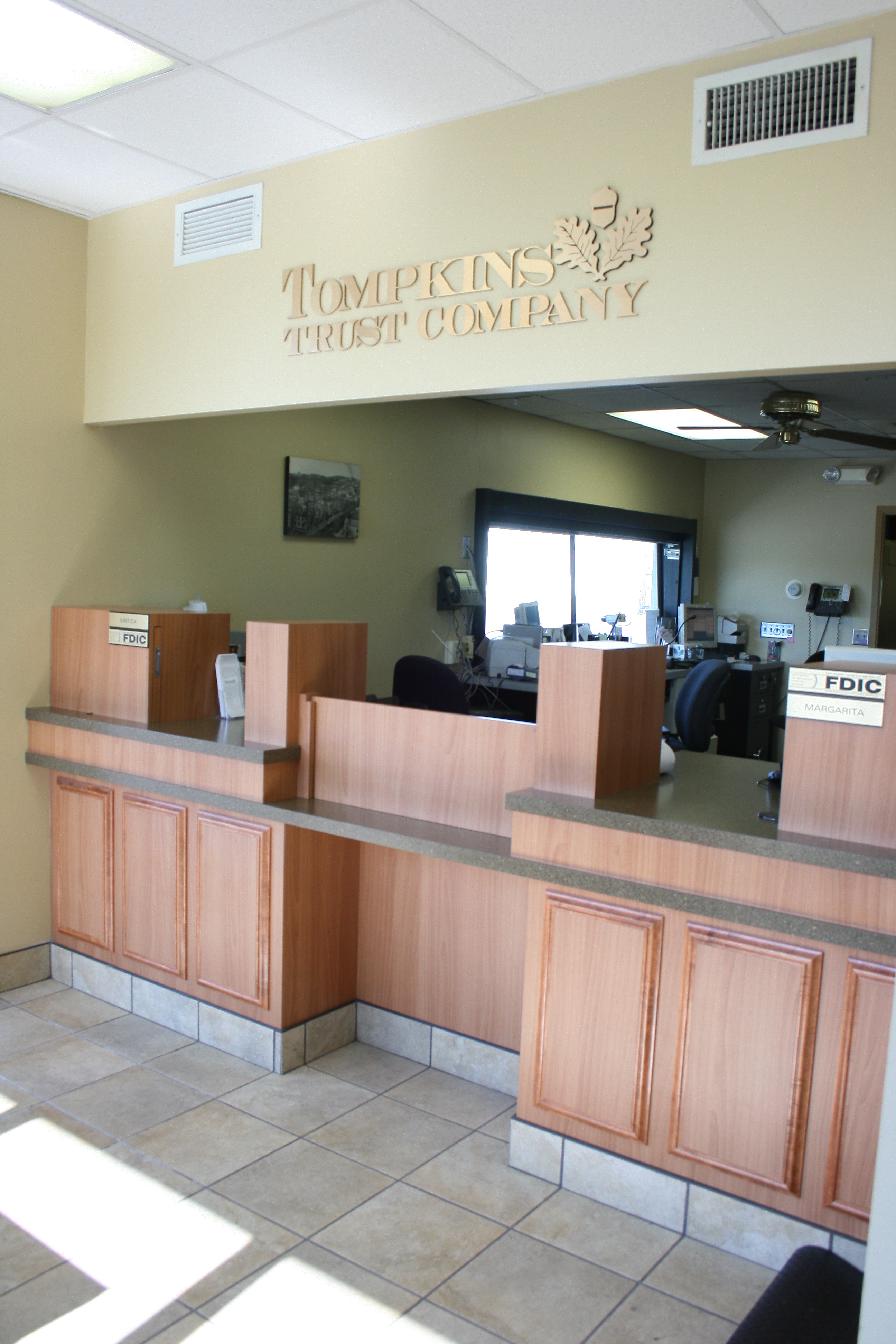 A new lobby and customer service office were created at the Seneca Street Branch of the Tompkins Trust Company to better serve the public in downtown Ithaca.